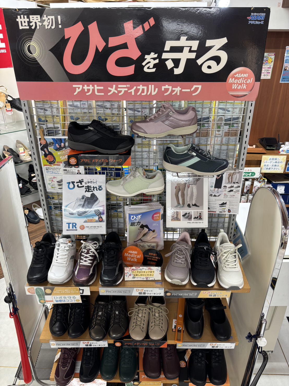 膝への負担に配慮し、無理なく歩きやすい設計のシューズを揃えています。